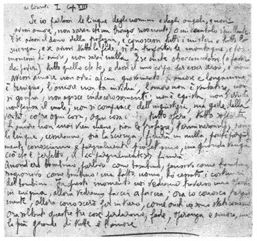 L’inno alla carità di San Paolo trascritto da Pier Giorgio.